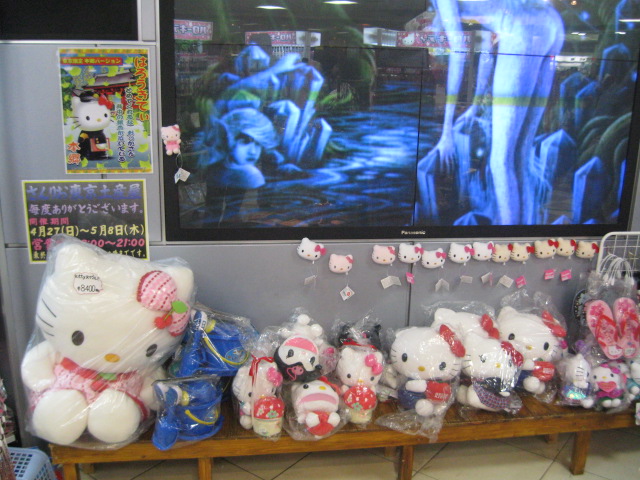 パイプオルガンや、テディベアなどかわいいものもありますが、水産直営のすし屋さんは、百円で、「あじすくい」 をやってました。