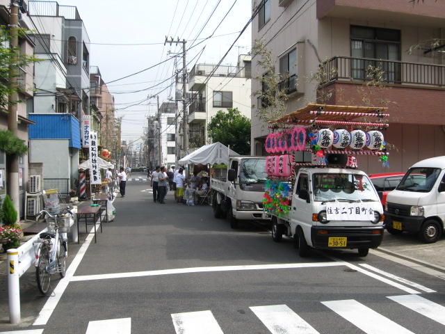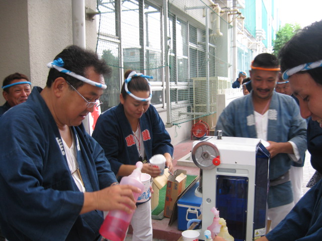 土曜日は、朝が子供神輿連合、午後から町内周り、夜は模擬店。