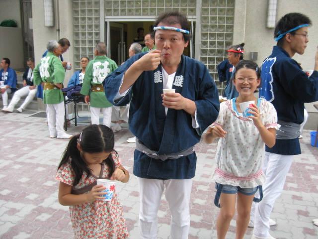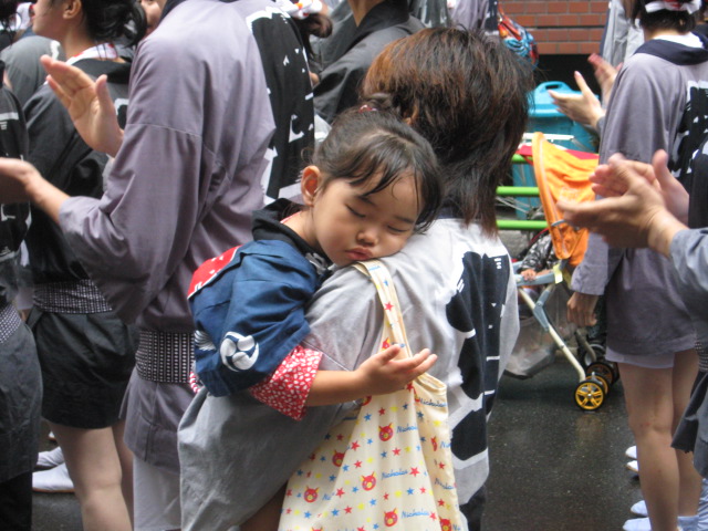 疲れて寝ちゃった子もいますが、神輿が降りる、五時から五時まで、長い楽しい一日でした。