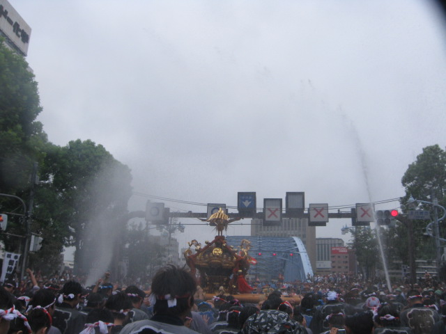 祭りのメインは、永代橋周辺です。降りたところの交差点で、差し回し、ジグザグと暴れてしまいました。