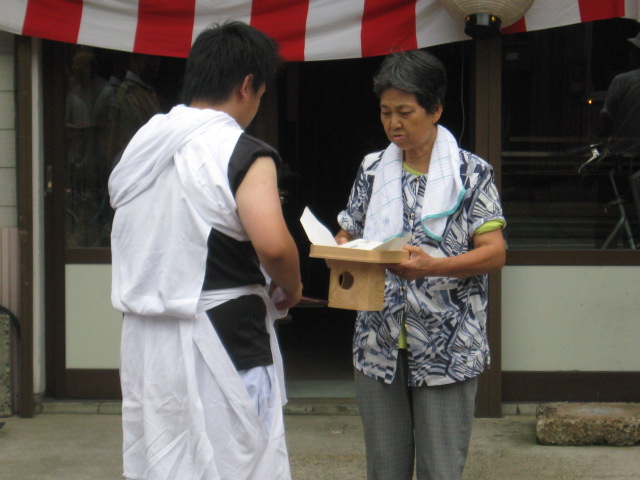 町の人は、待っていて、三宝にのせた、奉納を渡します。