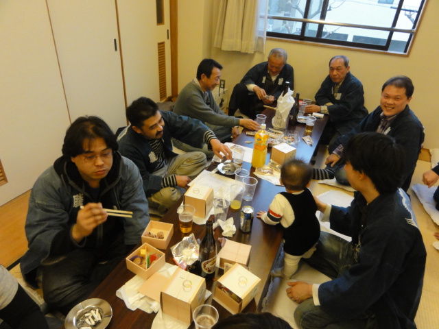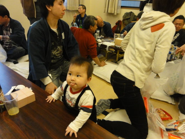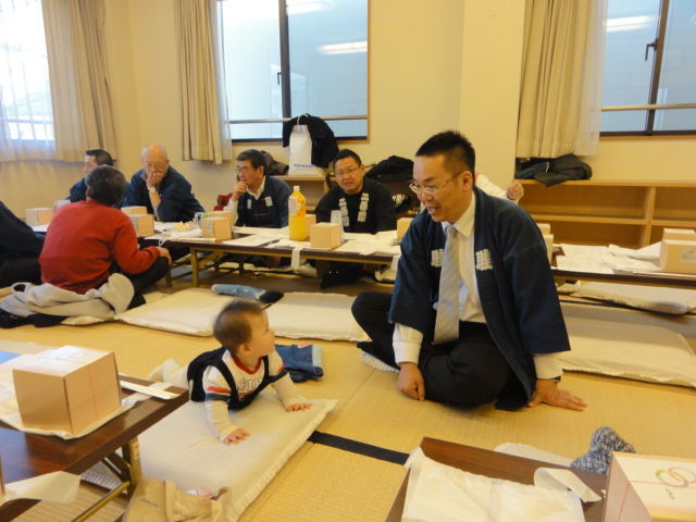 早く家に帰りたいでしょうが、新幹線も止まっています。区長が顔を見せていましたが、式典はすべて神社境内に変更して、防災服での参加です。