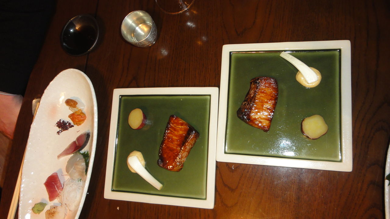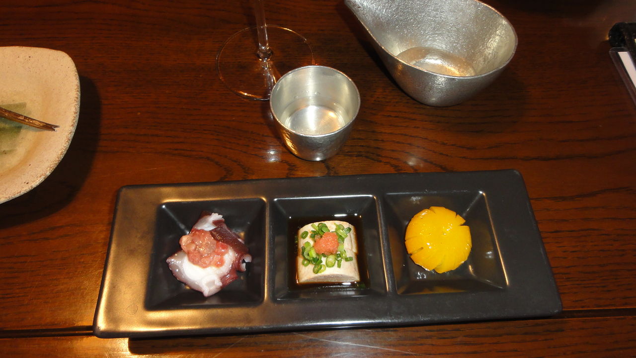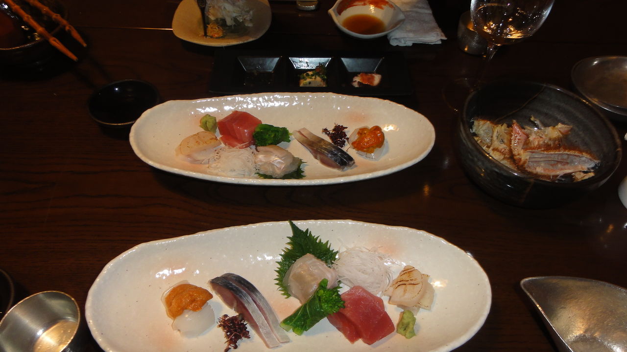 おとおし、おつくり、焼き物、どれもきれいです。ずいぶんサービスしていただいて、5人で39000円でした。