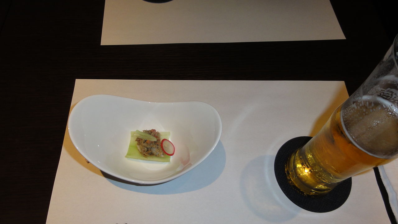 まず突き出しはカニミソのサラダ。