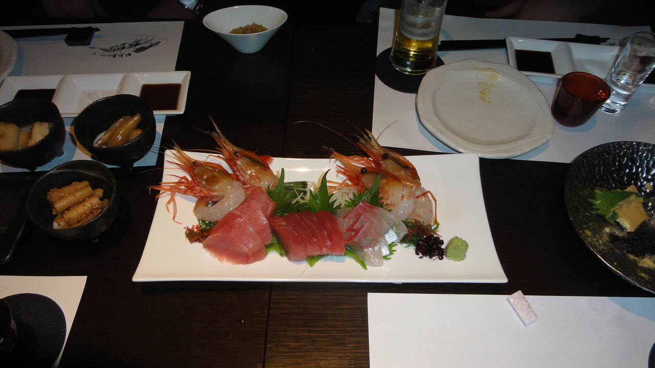ホタルイカ、厚揚げ、焼き鳥、お刺身はメニューに無い大きな牡丹エビを出していただきました。