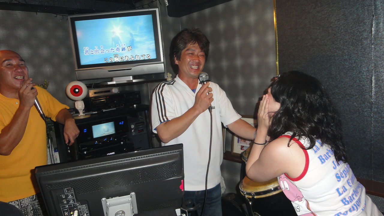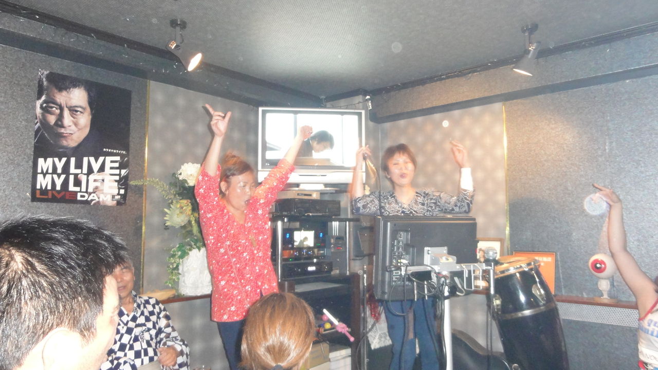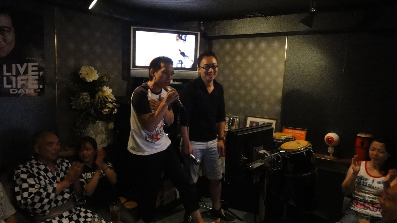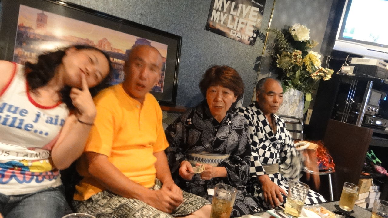 神酒所でトン汁などをごちそうになり、銭湯で汗を流して、7時からはカラオケです。