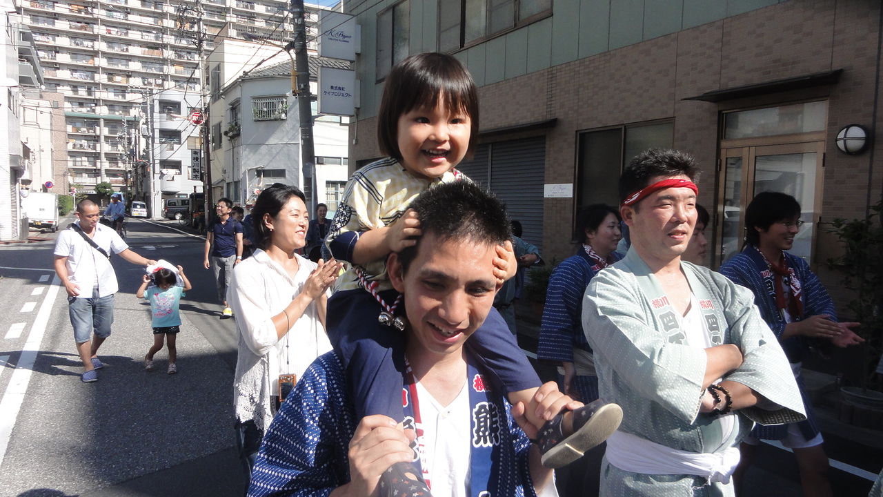 ナツキはママと曾ジイチャン、曾バアチャン、スミチャンと一緒にお神輿を待ってました。