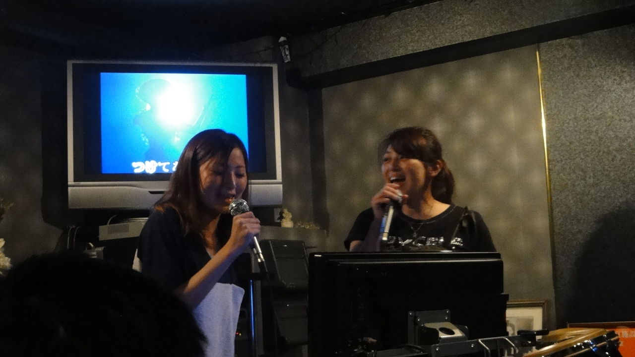 写真はどちらも親子で熱唱の様子です。