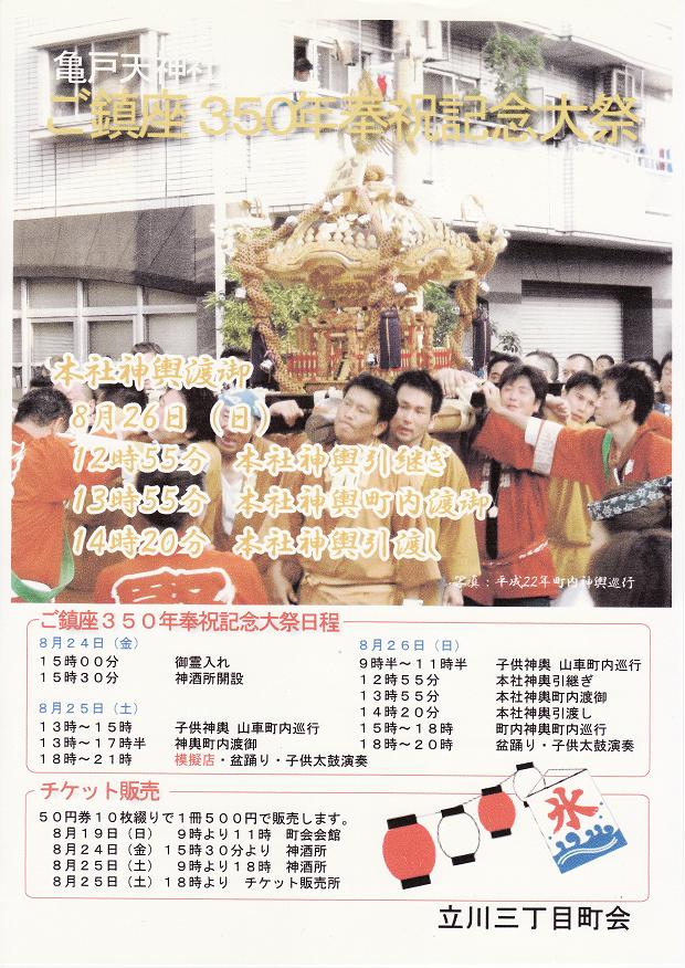深川祭りや亀戸天神に参加できなかった方、これが今夏ラストのお祭りです。