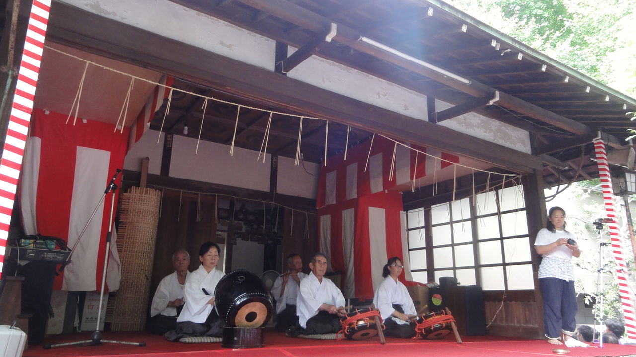 参道の入り口に千葉の銚子からきた太鼓集団がいました。