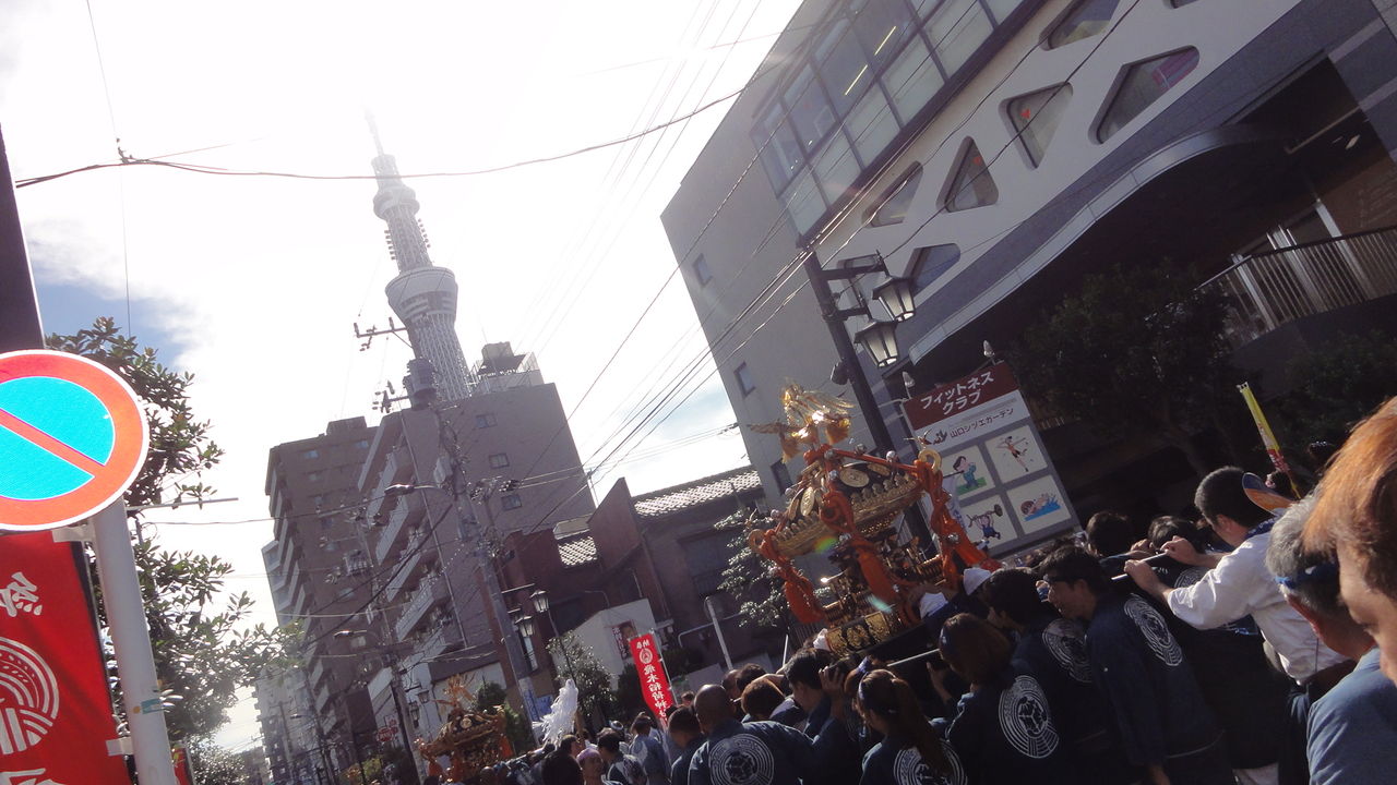 スカイツリーに向かってお神輿が進みます。