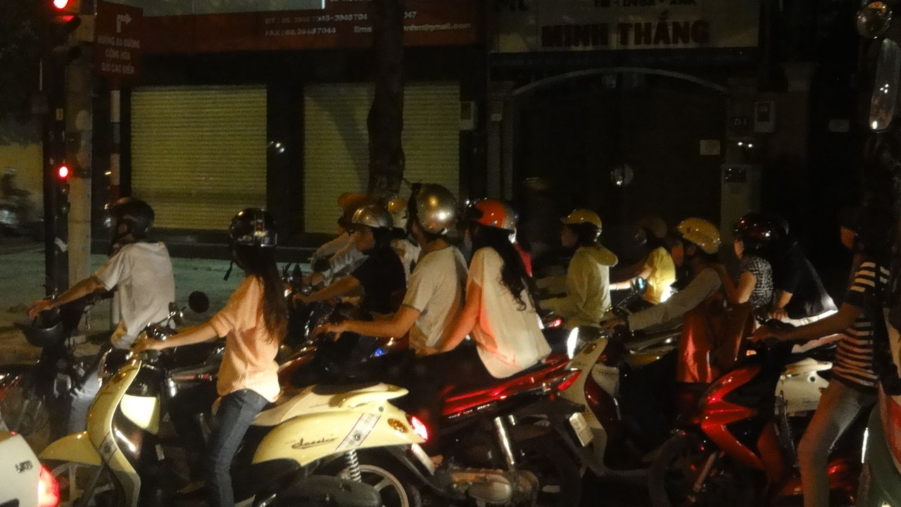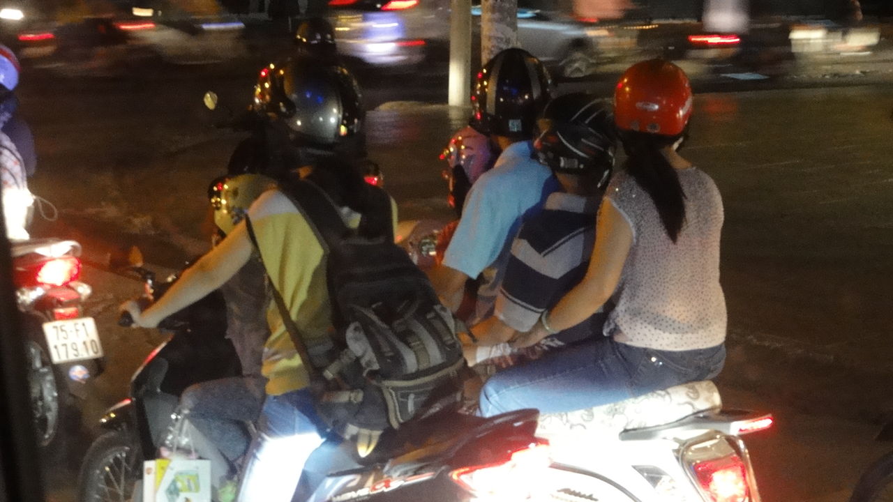 でもこれは普通の情景で、スクーターの三人乗りは当たり前。