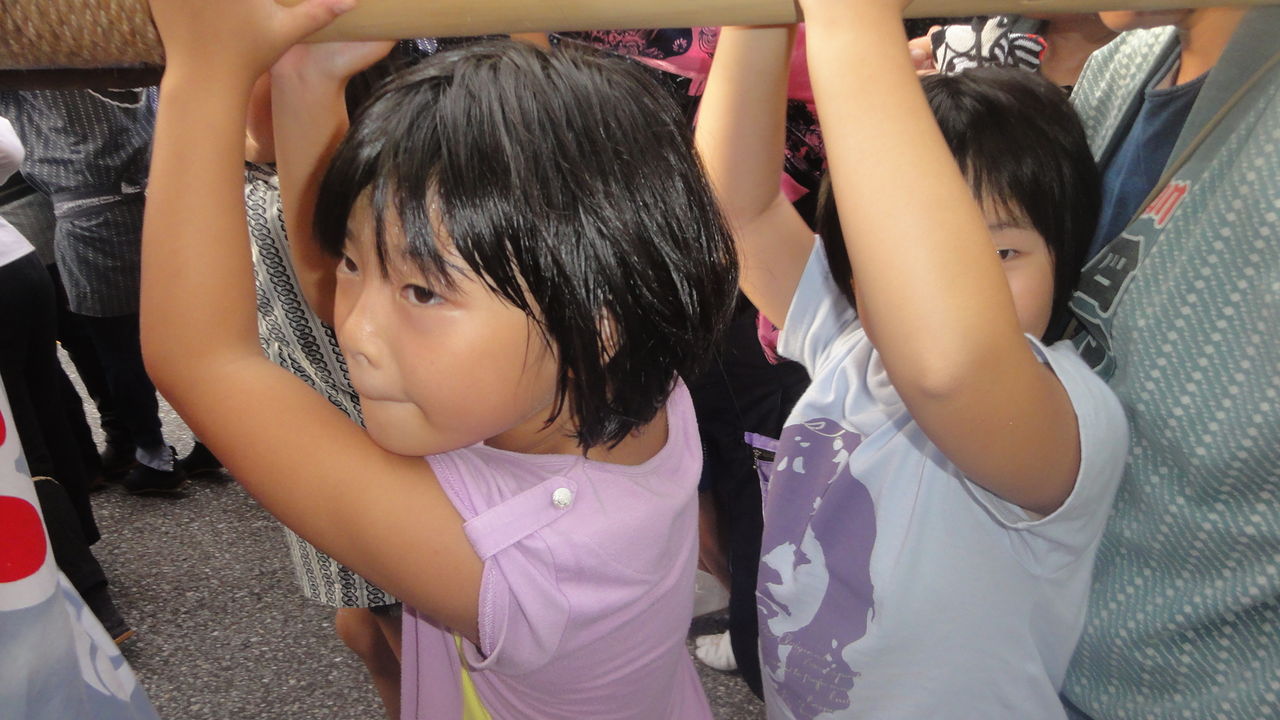 シオンお姉ちゃんと一緒に手をつないで、お神輿について回りました。