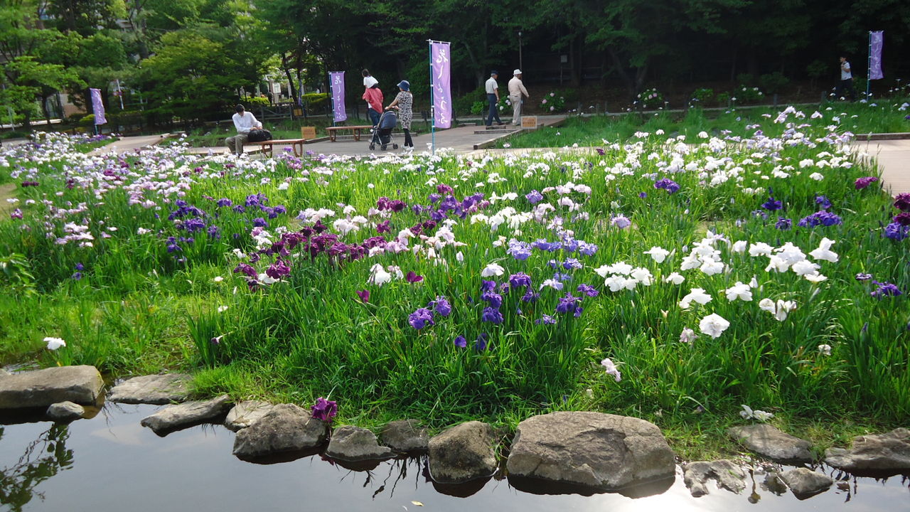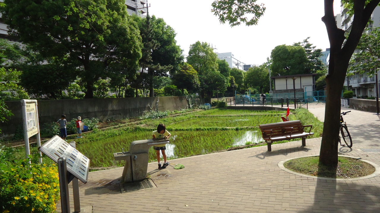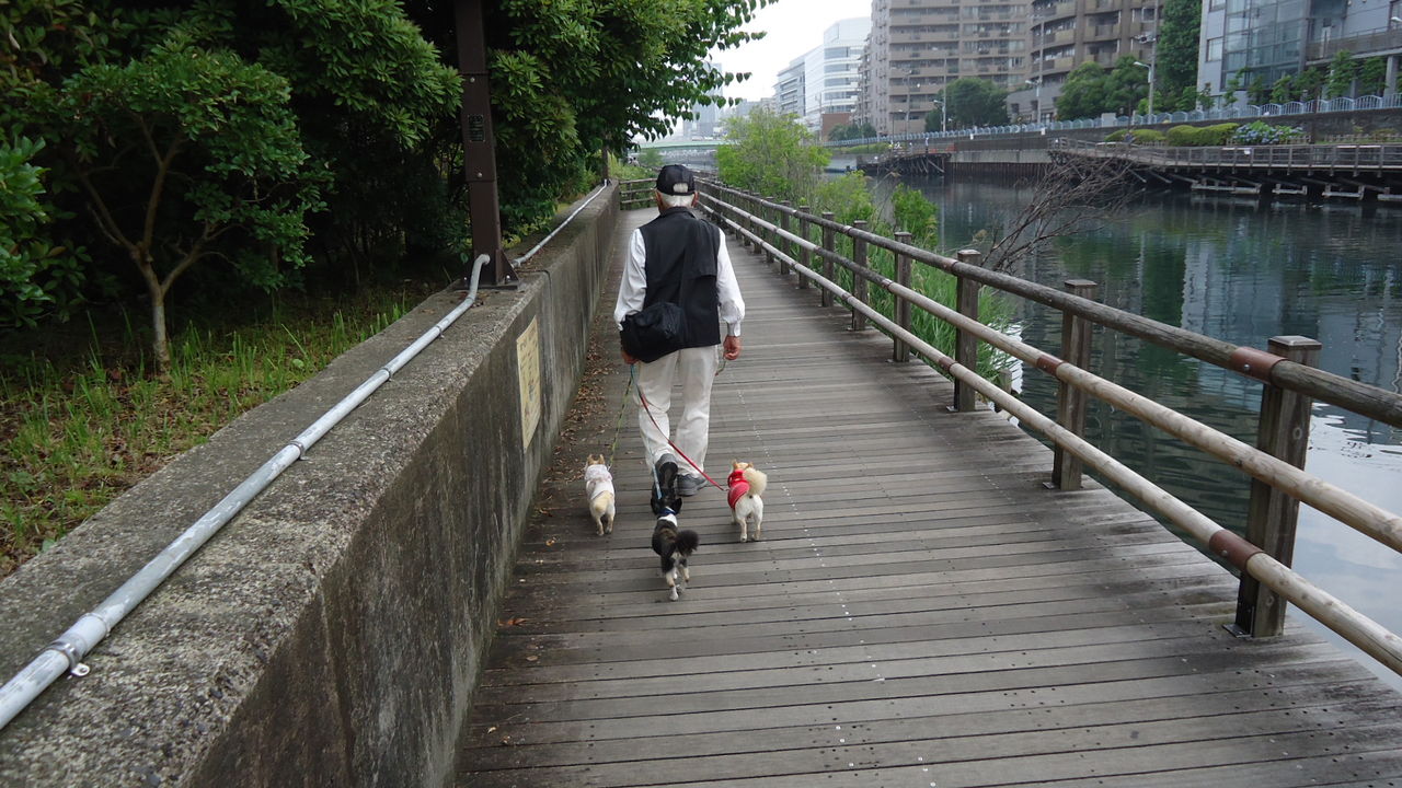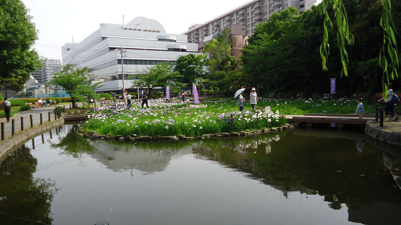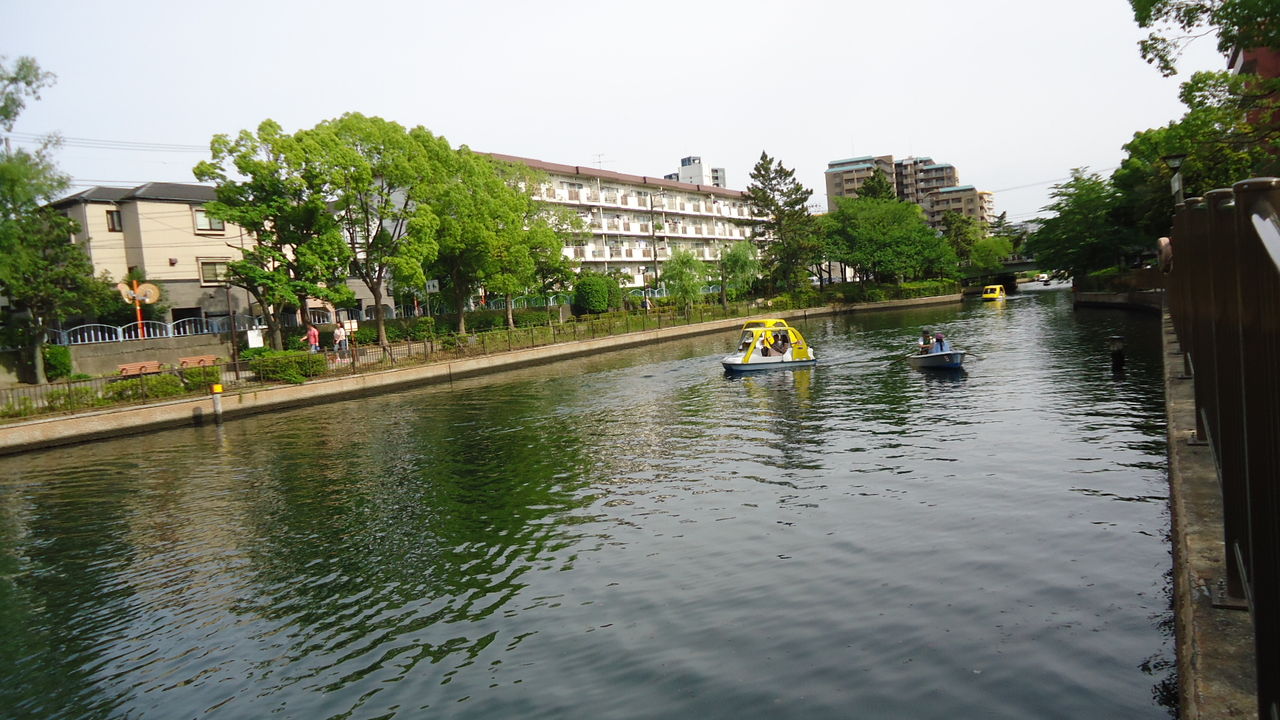 横十間川の両岸は散歩自転車道が整備されていて、クローバー橋には水上アスレチックもあります。