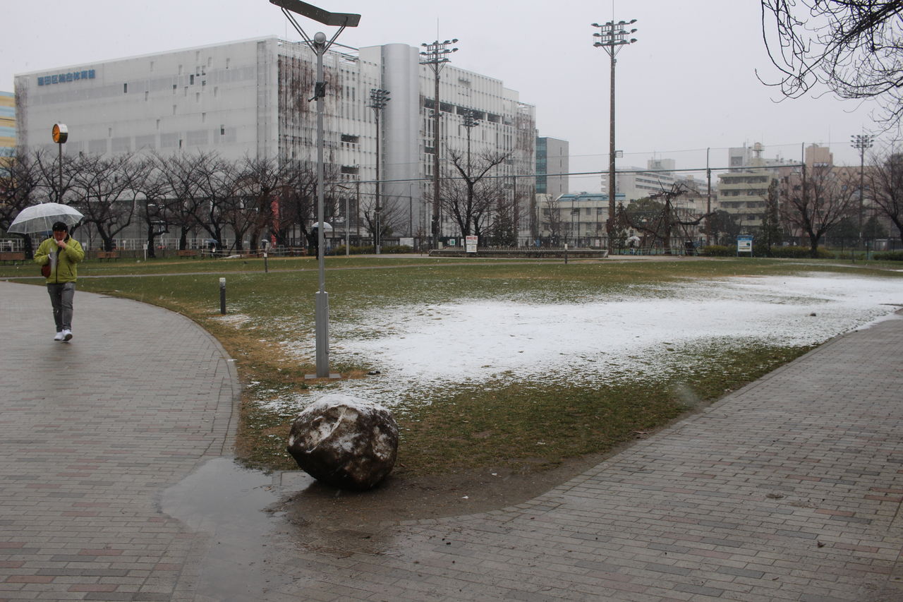錦糸公園雪まだ前回の雪が残っているうえに、今日の雪です。