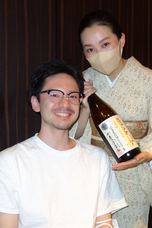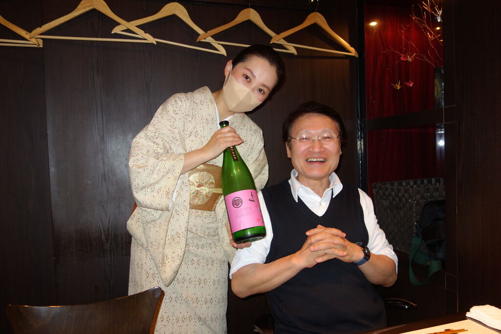 三男が二十歳のころからお世話になりましたが、女将さんにお願いするお酒ポーズも最後か。