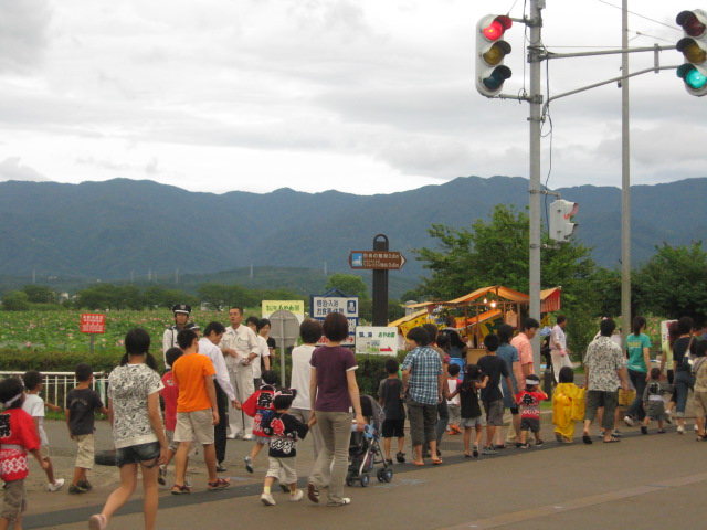 子供たちが作った、祭りの灯篭が、あちこちに飾られています。
