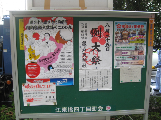 今日は亀戸天神のお祭りで、一昨日あたりから、各地で盆踊りが開催されてます。