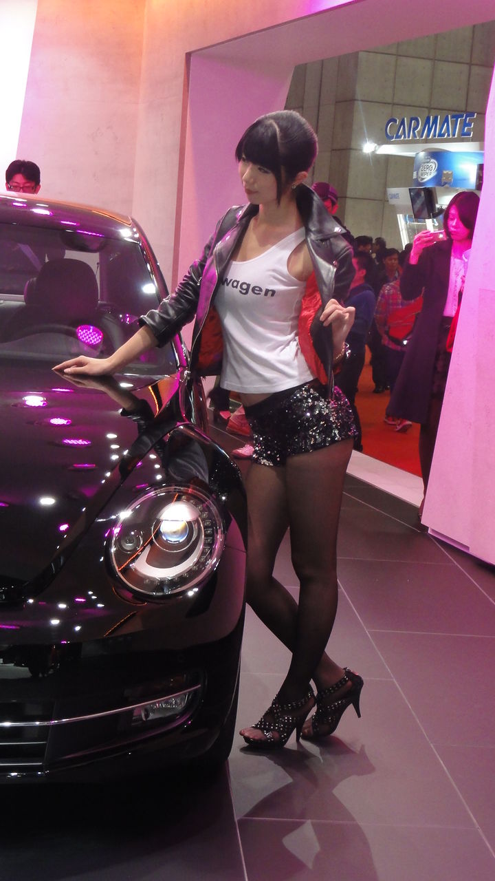 モーターショーといえばやっぱりモデルの美女ですが、バブルのころのハイレグ姿は無く、せいぜいミニスカート。