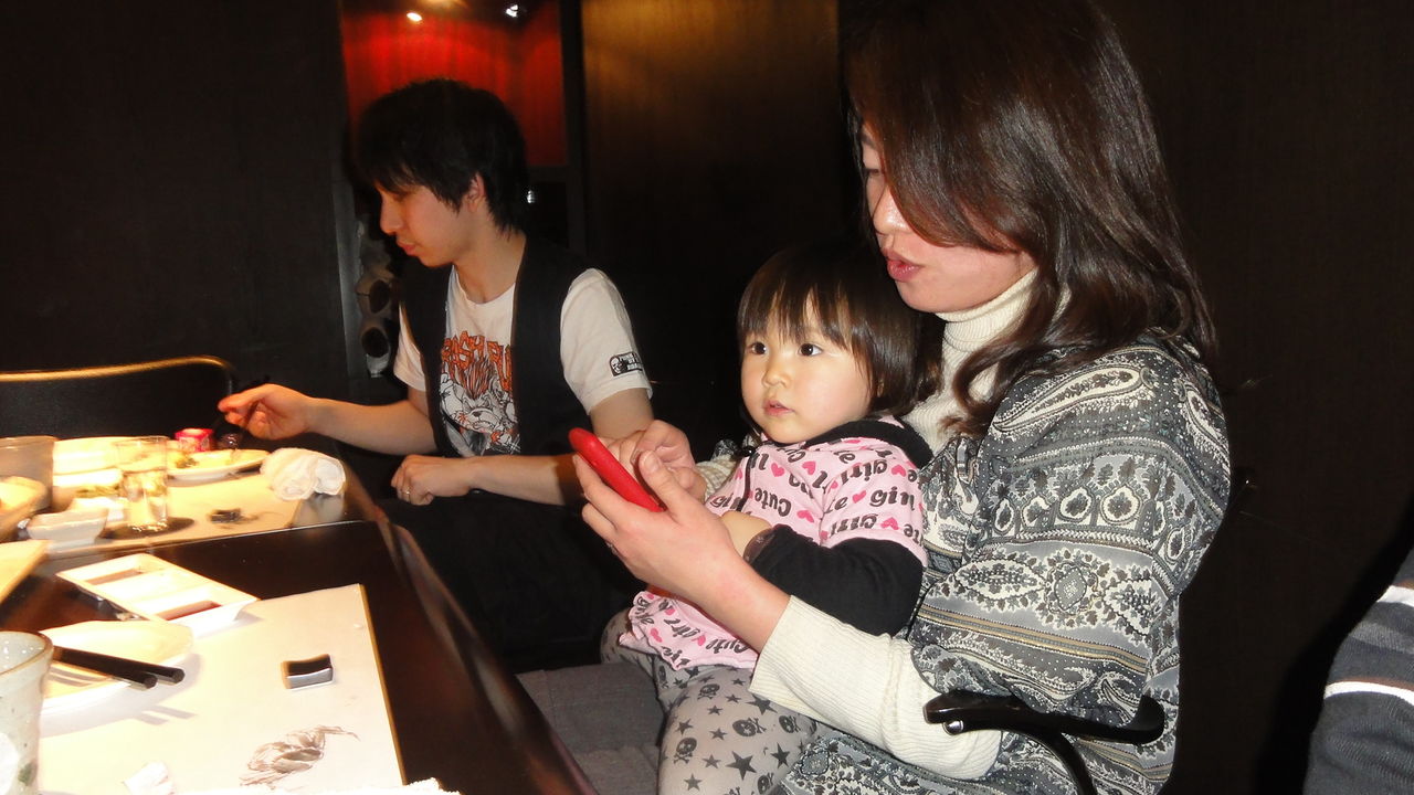 クマママが上海旅行っへ行っている最中に、錦糸町の和食「子えん」で夫婦参加型宴会8名をやりました。三男はこの日もお店でアルバイト。