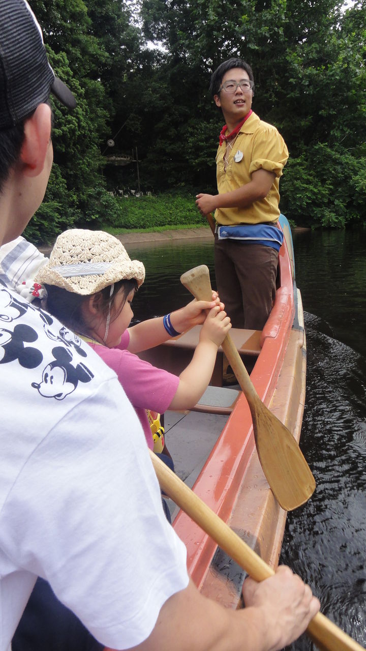 奈月もちっちゃいオールをもってカヌーに乗ります。これに乗るのは20年ぶりくらいです。