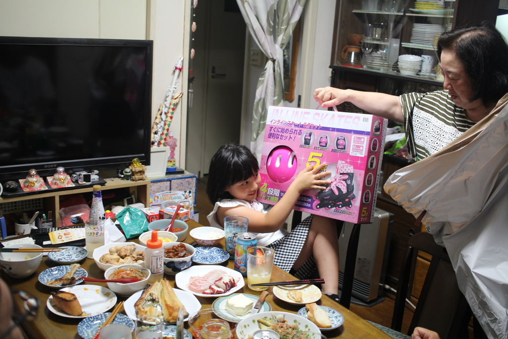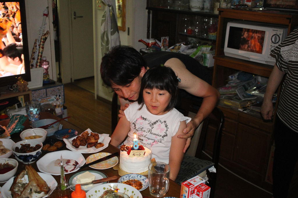 昨日は孫の奈月の誕生日祝いでした。ケーキのろうそくをパパに先に消されそう。
