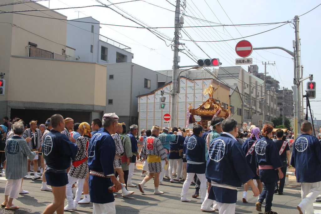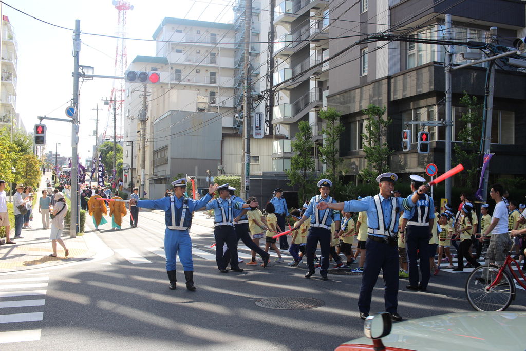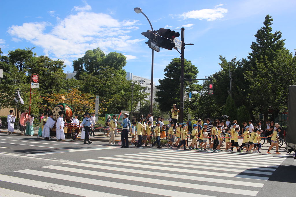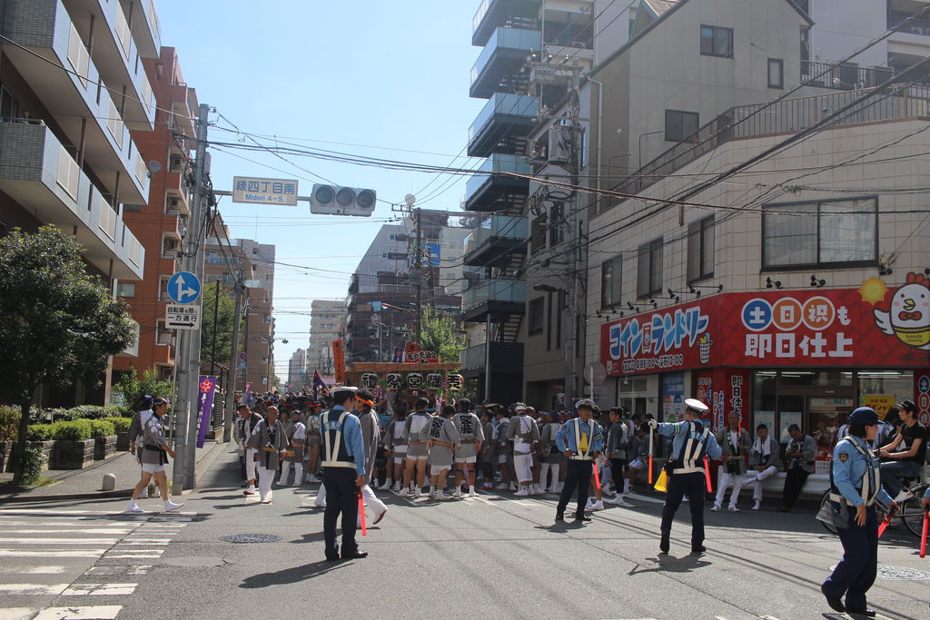 朝は江東橋のたもとから京葉道路へお神輿が渡御しています。