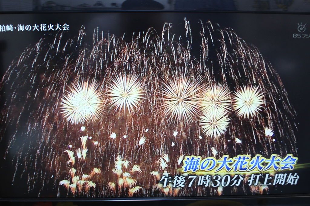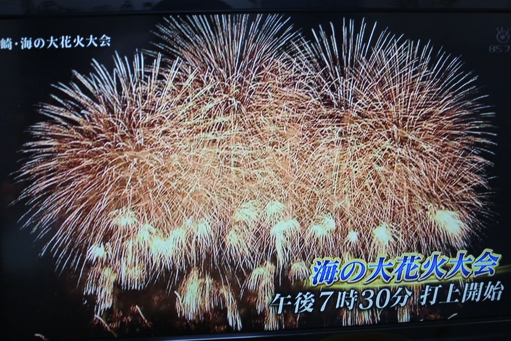 今日は台風で隅田川花火大会が日延べになりましたが、7月26日に新潟柏崎で行われた海の花火大会をテレビでやってました。