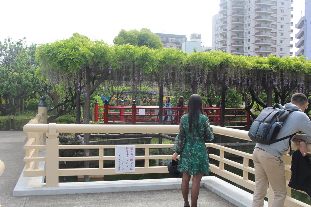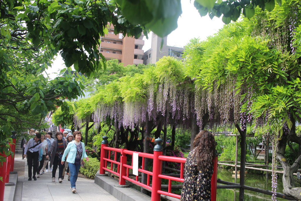 押し寄せる中国旅行団。でももう藤の花がありません。