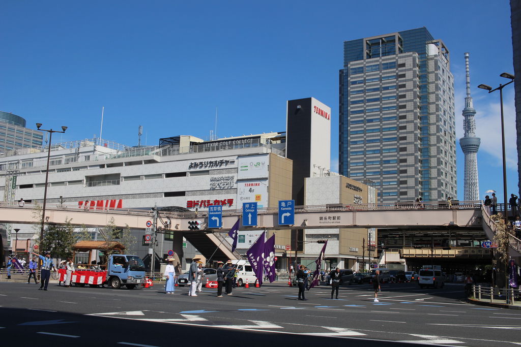 朝錦糸公園の前を鳳輦渡御の行列が歩いていました。