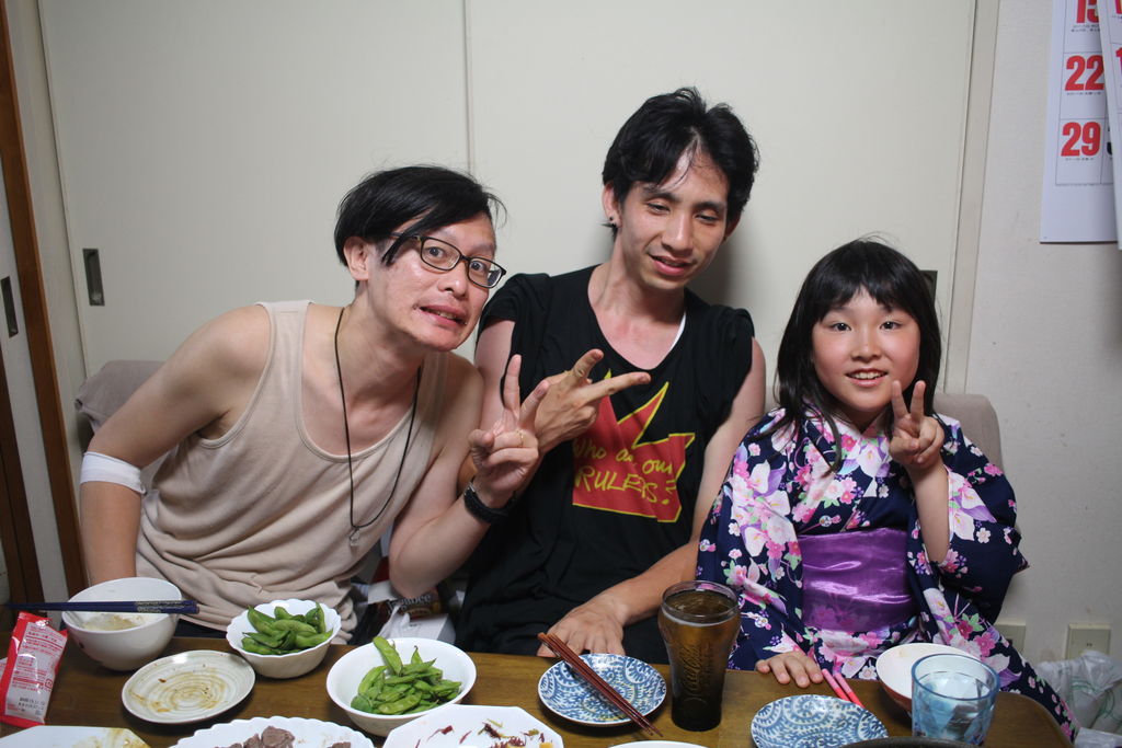 この晩は隅田川花火の日で長男家族とショーゴ君が飲みに来ました。
