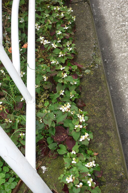 数日前、店の花を植えた鉢も凍ていて斜めにしても落ちない。