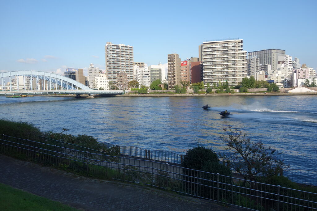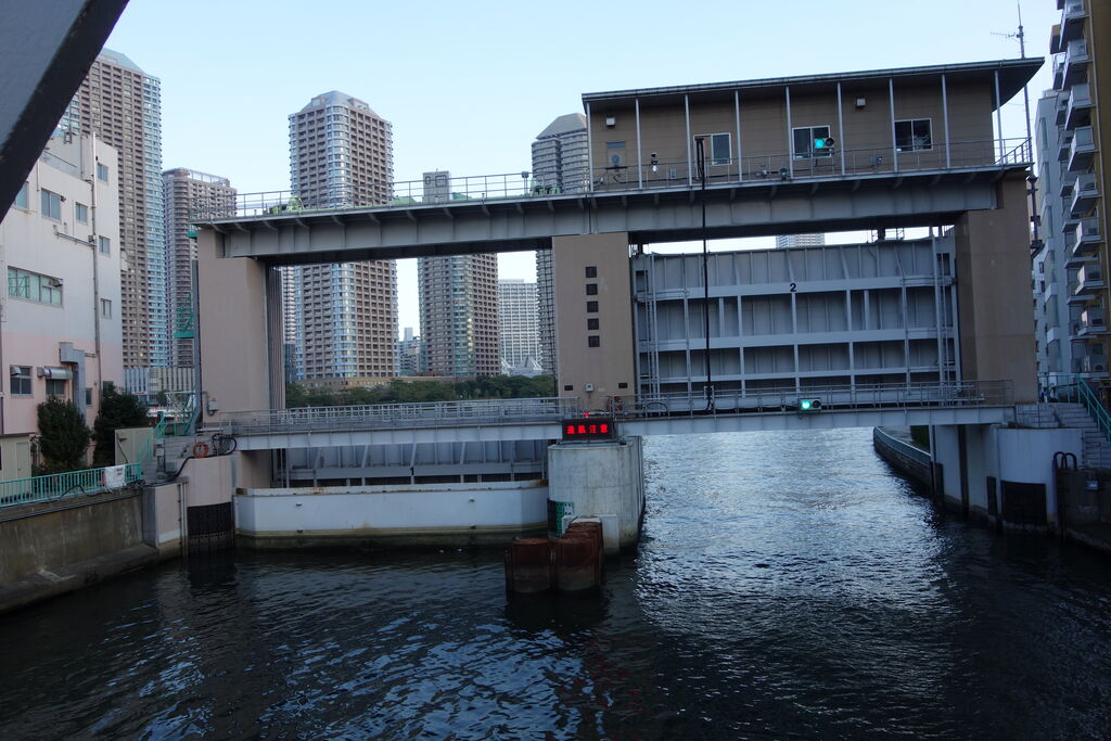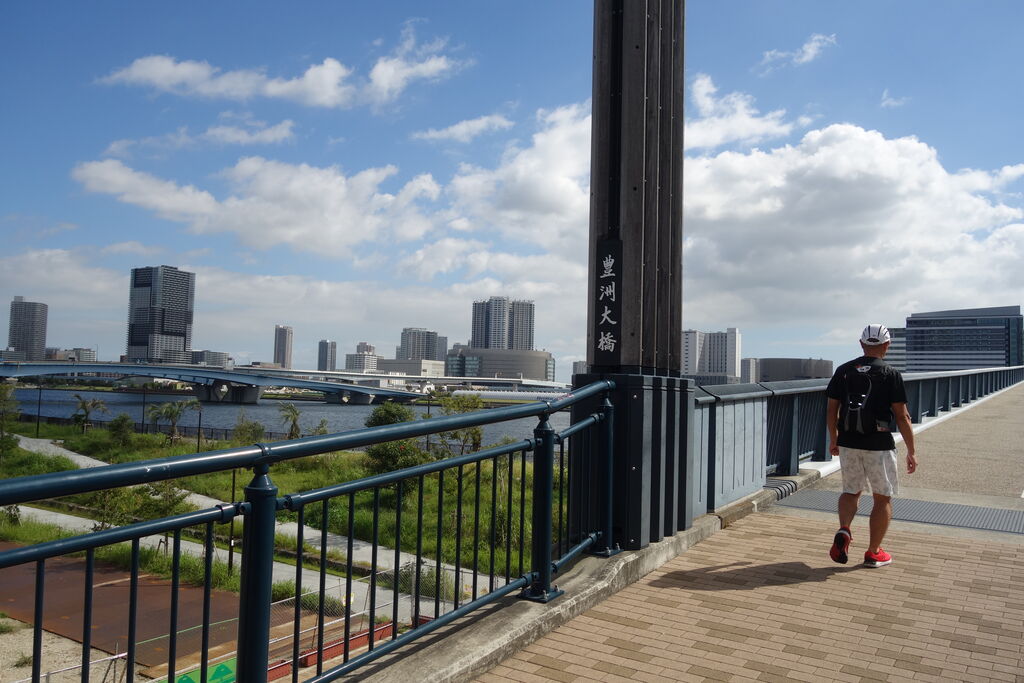 怖かったのは勝鬨橋で、かなり揺れるのと金具がガチャガチャ鳴る音、さらに昔の橋なので歩道の手摺が低く、自転車に乗ってて地震でもあったら隅田川に落っこちそうです。でも地元の人は平気なようでスイスイ走っていきます。