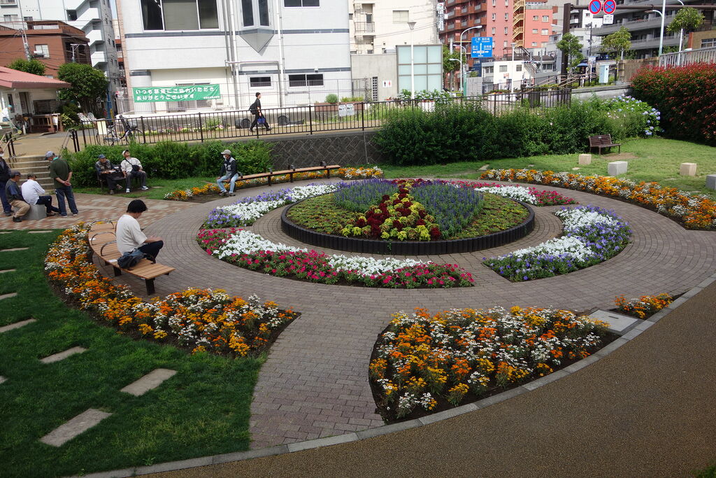 通勤途中の公園ではいろいろの花が咲いて、