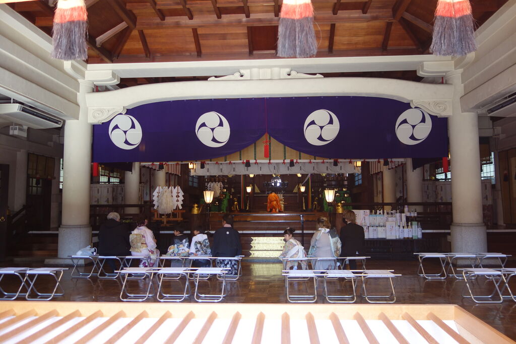 富岡八幡様では七五三のお祓いをやっていて平日はのんびりとした雰囲気です。
