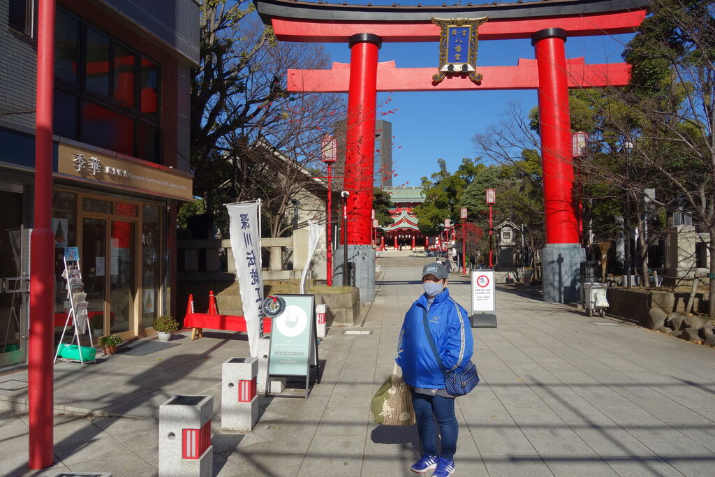 築地へ渡って波除け稲荷にお参りしたら、女性が英語で撮影してました。ユーチューバーかな。腰痛回復の願掛けではなさそうです。