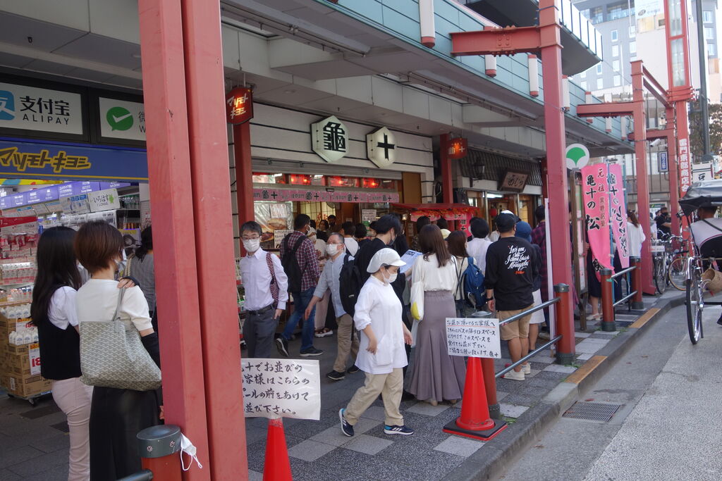 浅草の亀十はクマママが9月に行ったときは、数人しか並んでなくてすぐに買えたと言ってましたが、あっという間に元のような行列になっています。地方発送は12月以降になるそうです。