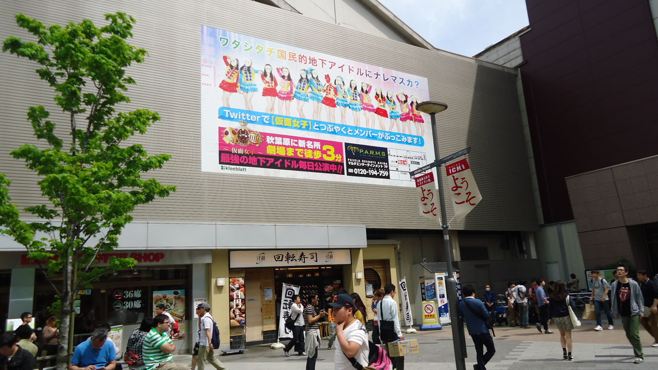 駅近くにはガンダムカフェ、AKB劇場、どちらも行列です。