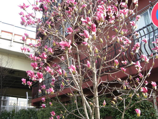 木蓮通勤途中に木蓮が咲いています。治療院のパンジーもやっときれいに咲きました。