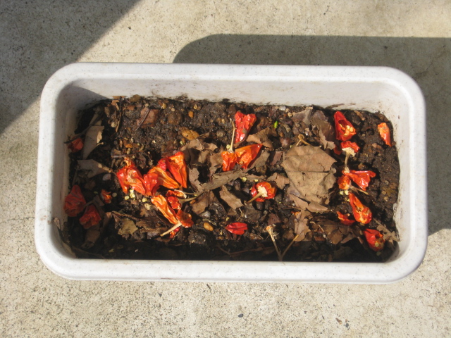 冬の間の鉢物を少し整理しようと、カラカラに乾燥した唐辛子の鉢から、種を取ってまいてみることにしました。