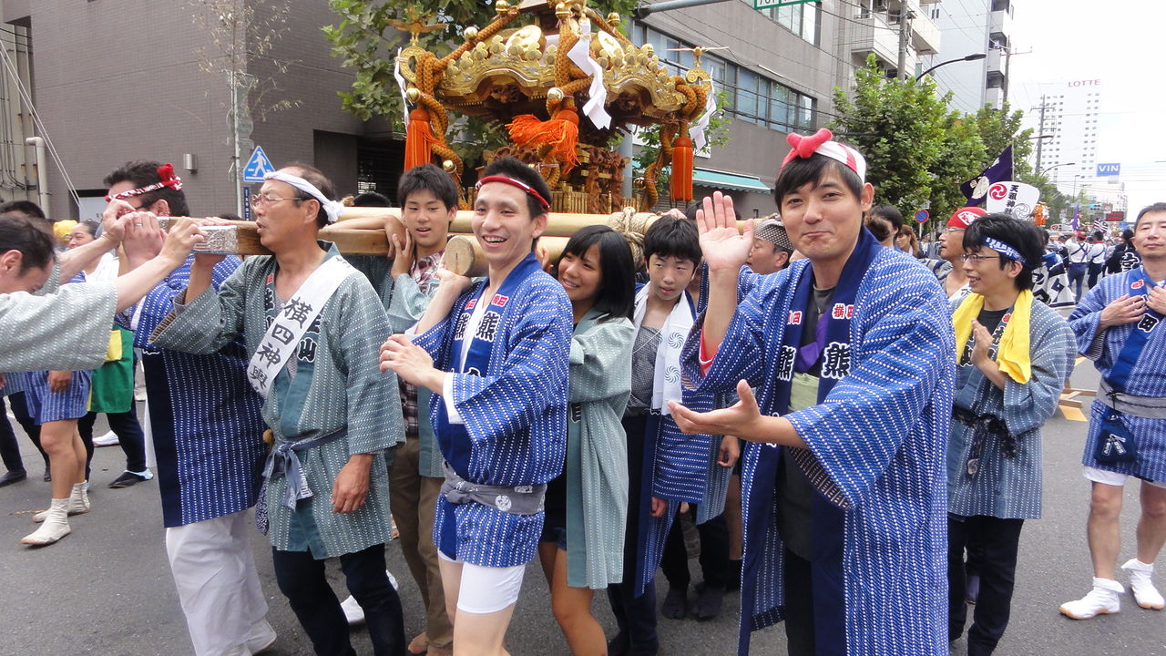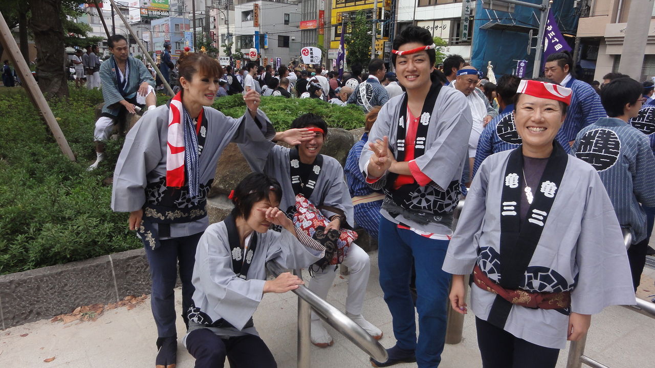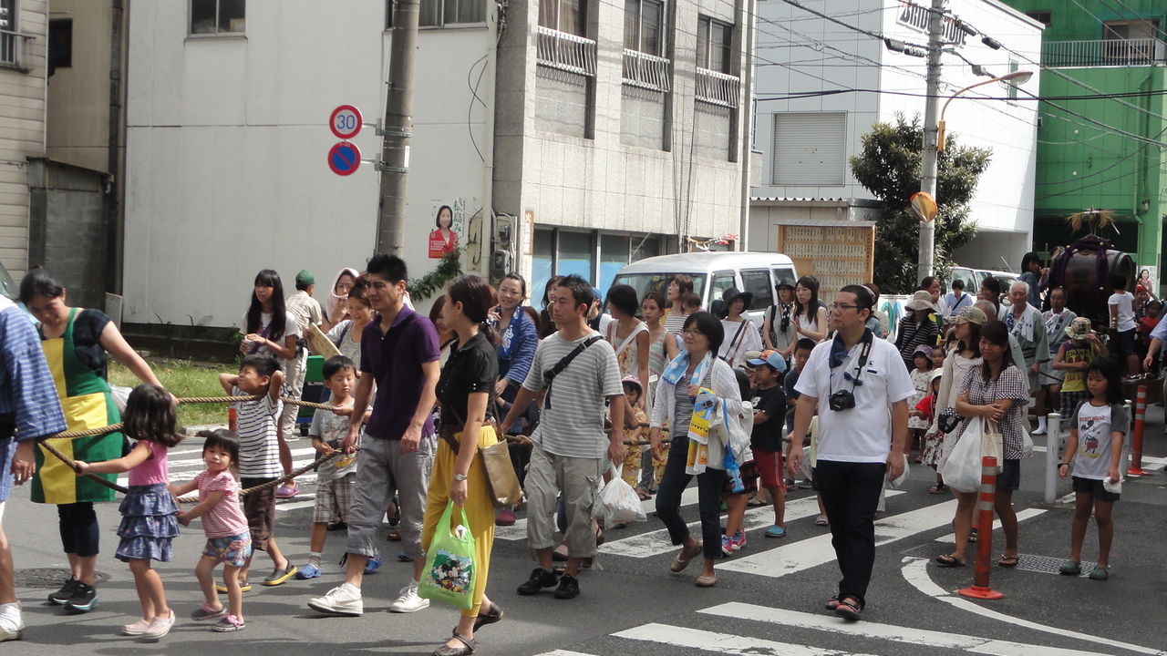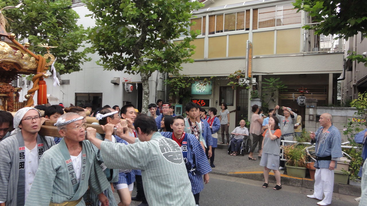 ナツキはママと曾ジイチャン、曾バアチャン、スミチャンと一緒にお神輿を待ってました。