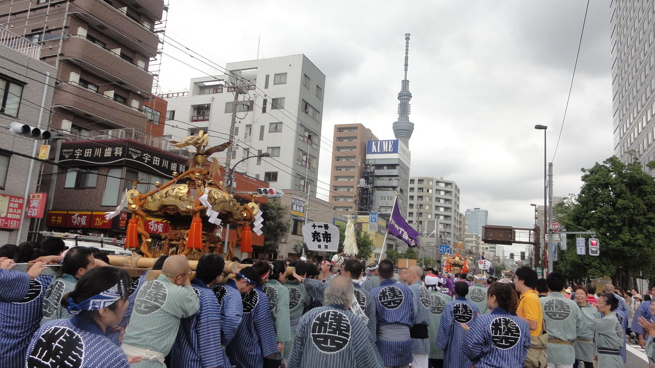 スカイツリーに向かってお神輿が進みます。
