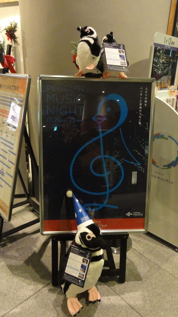 水族館に行くと入口で、ドリンク券がもらえたので、ペンギンを見ながら乾杯しました。