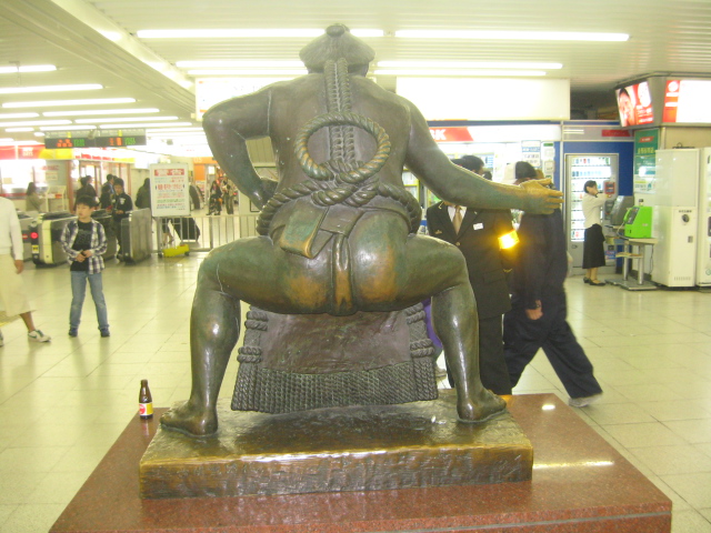 栃錦小岩駅の出口には、大横綱、栃錦の像があります。