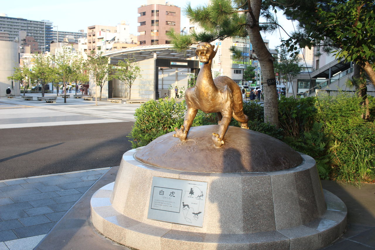 豊洲駅前の白虎にかまれるよ。
