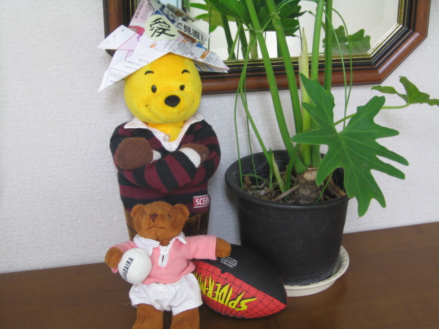 早稲田のジャージを着せたら、和み系のプーさんが、なんとなく凛々しく見えます。
