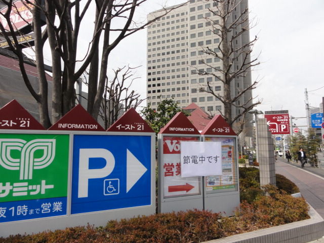 イースト21も節電。オリナスはまだ閉店中。