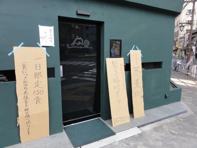 入り口の鳥居が横の山長さんの壁にぶつかっています。中では青森、下北半島の物産をやっていましたが、地震や津波の様子はどうだったのかを聞くと、まだ電気が来ていないとの事でした。