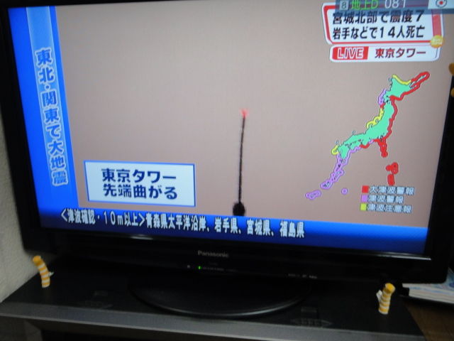 東京タワーが曲がった写真を出しましたが、スカイツリーは大丈夫か。昨日おしなり君の家に行って見た様子はガラガラです。