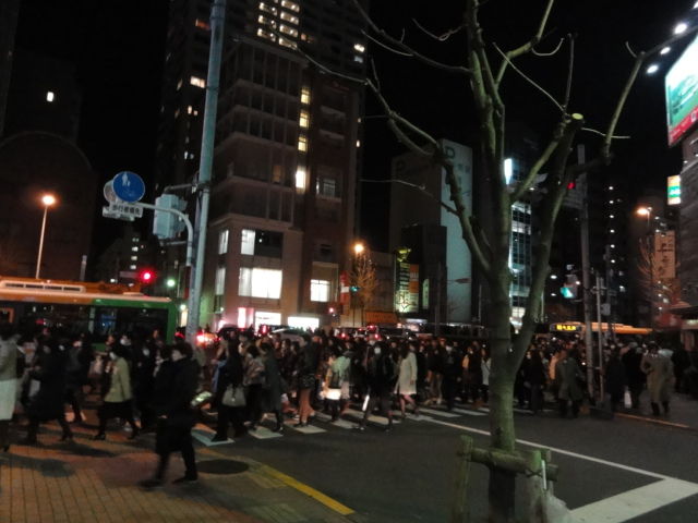 一夜明けて地震の状況はまさに日本沈没。帰り道の錦糸町駅周辺も、ものすごい数の歩行者、車。